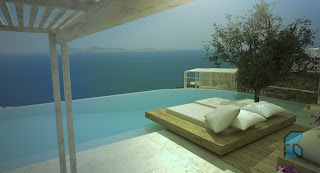 green rooms mark the independent entrance of each villa, creating a harmonized balance between built environment and nature. Location of plants are also influenced by the need to provide shade by the astonishing sunlight of Mykonos.